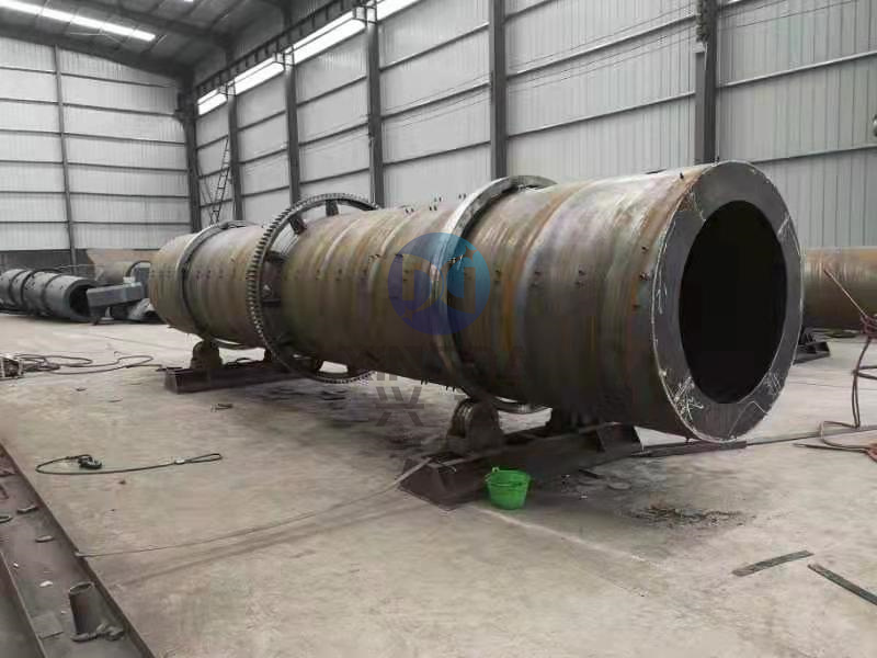 3.筒體:筒體是整臺烘干機的工作部分。其外部有用于支撐的滾帶及用于傳動的齒圈,內部焊接的揚料板成排狀分布, 在烘干機工作時不斷揚起、拋灑物料形成熱交換以達到烘干的目的。