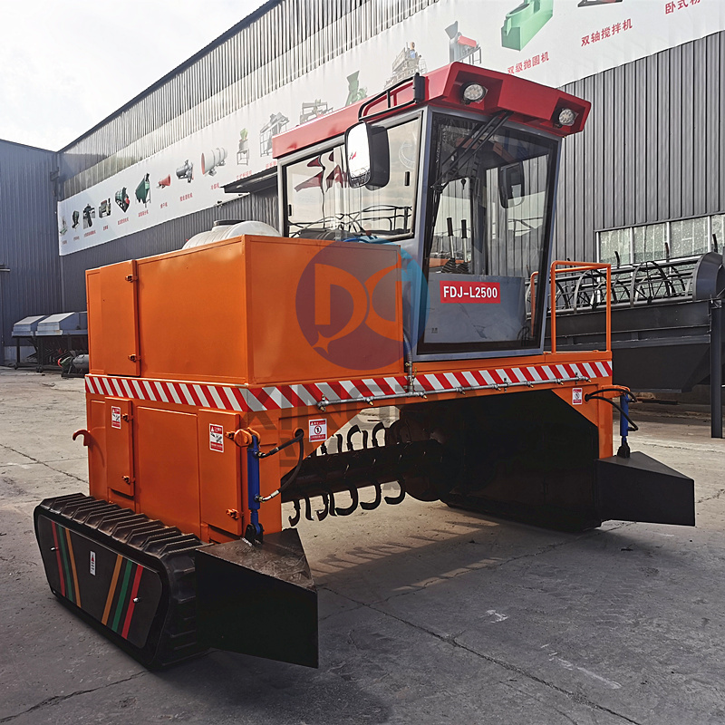 履帶翻拋機是整套有機肥生產線中的一款有機肥翻堆設備。在有機肥生產線中擔當起到翻拋物料的作用。 履帶式翻堆機,水分大的物料原地不會打滑,爬窩現象,終身不會更換輪胎,拉桿操作原地180°轉彎調頭,淘汰了方